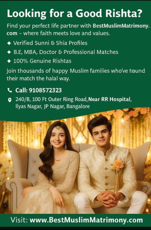 Best Muslim Matrimony – Your Trusted Muslim Matchmaking Partner Best Muslim Matrimony is dedicated to helping Muslim families find the right life partner with ease and trust. We provide 100% verified profiles of brides and grooms, ensuring genuine, halal, and secure matchmaking. Our platform connects families across India and abroad, offering a smooth and confidential experience for a blessed Nikah.
